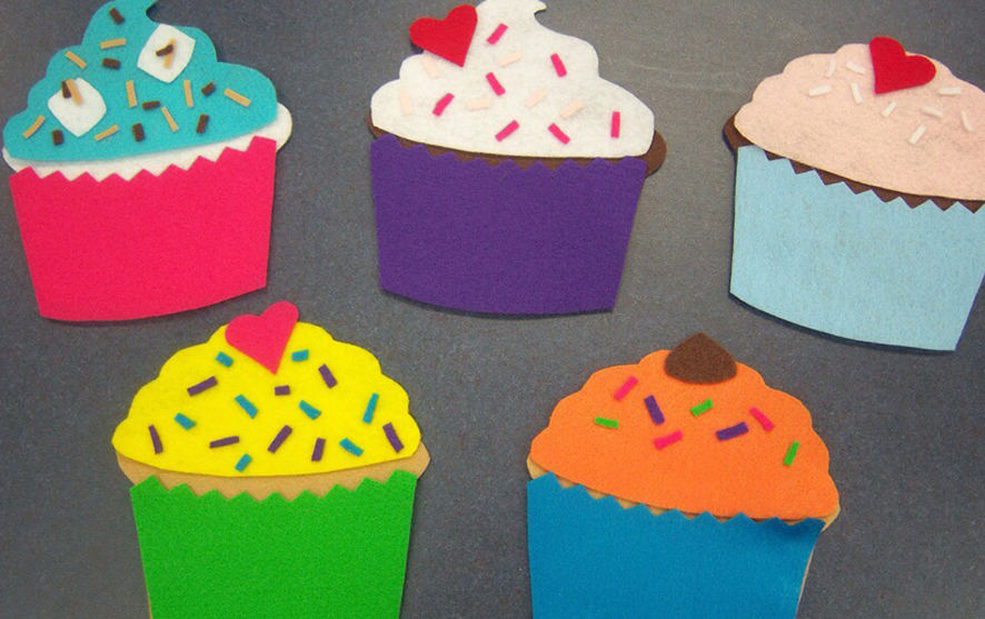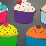 To create collage cupcakes, you can cut out a shape for the base, e.g. rectangular with angled sides to make the cupcake case, a semi circular shape for the top of the cake and then lots of small pieces to be sprinkles and other decorations. If you’d rather not make a cupcake collage, you might like to make a collage based on something your child is particularly interested in.