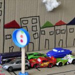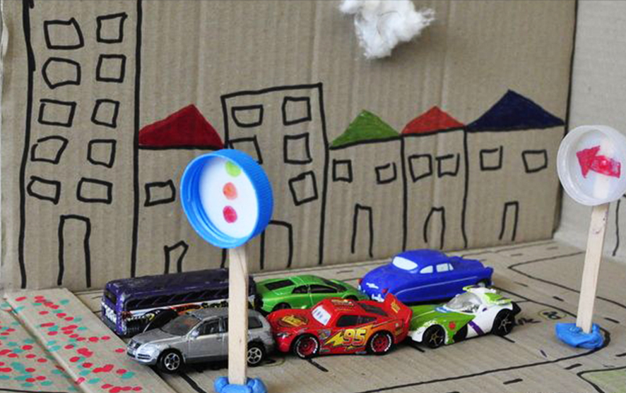 You can get creative ahead of playing with your child, drawing a road or car track onto your paper/cardboard. You may like to add green grass, a river, lake, houses – you could create your own entire city!