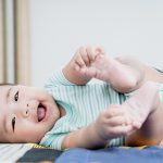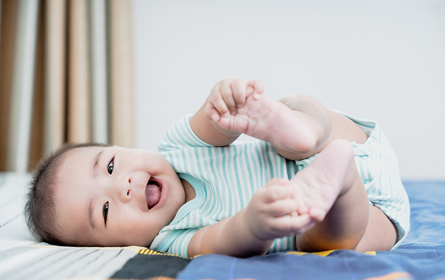 For babies and young toddlers, lying down and using their legs and feet is great for developing core strength. Having something that will make a noise and be engaging to their senses when they kick and push it with their feet is a good way of teaching cause and effect and building concentration for increasing periods of time.