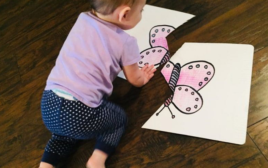 Once drawn and cut out, you have a series of puzzles to lay out for your child to explore. They can move the pieces and see if they can match them together.