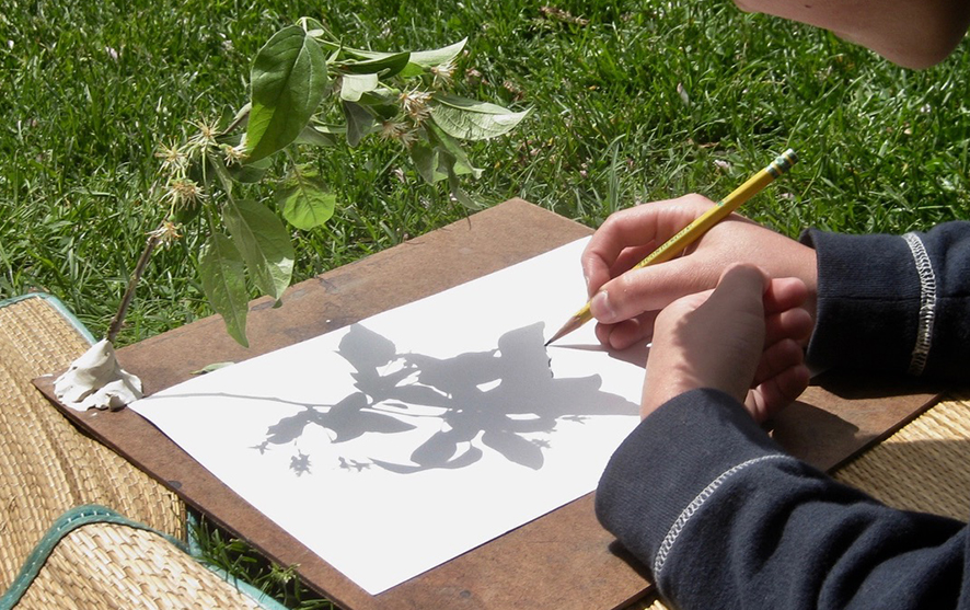Take a piece of chalk or a crayon and draw along the outline of a shadow, commenting on how you are holding the chalk – if you are making straight or curved lines and what shapes you are drawing.
