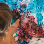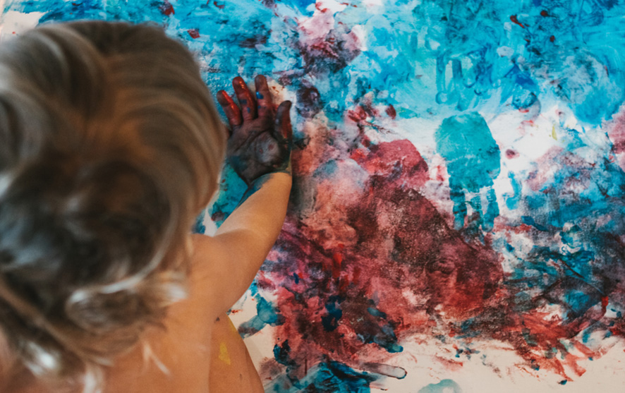 You will end up with a messy work of art, but this is a fantastic way to get your child interested in making marks, and also develops the arm, shoulder and hand muscles they will need for mark-making and writing as they grow older.