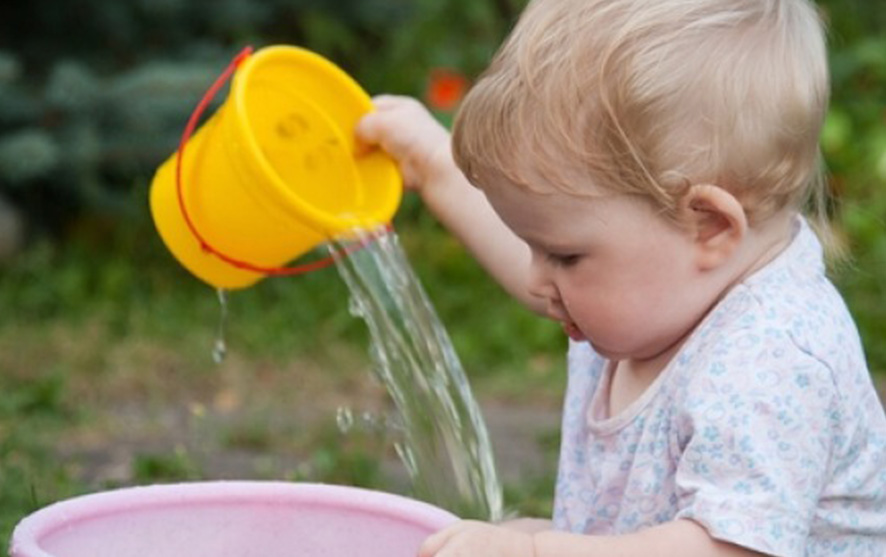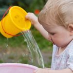 Fill a big bucket/bowl full of water and place a smaller bucket a couple of feet away. Lay out different containers and ask your child how many scoops of water they think it will take to fill up the smaller bucket/bowl; once the smaller bowl is full and the water has been transferred, you could encourage your child to try and lift the buckets and talk about the weight and sizes, are they the same? Is one heavier or lighter and why?