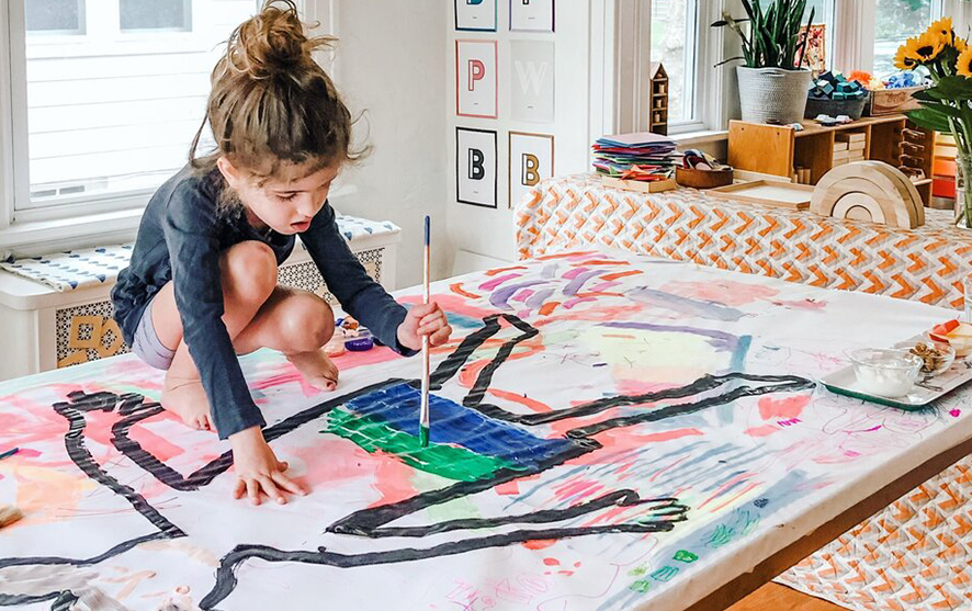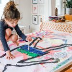 Encourage your child to lay down and draw around them with chalk. You can lay down and they can draw around you. Then you can draw on your features and explore your differences as you draw each other…