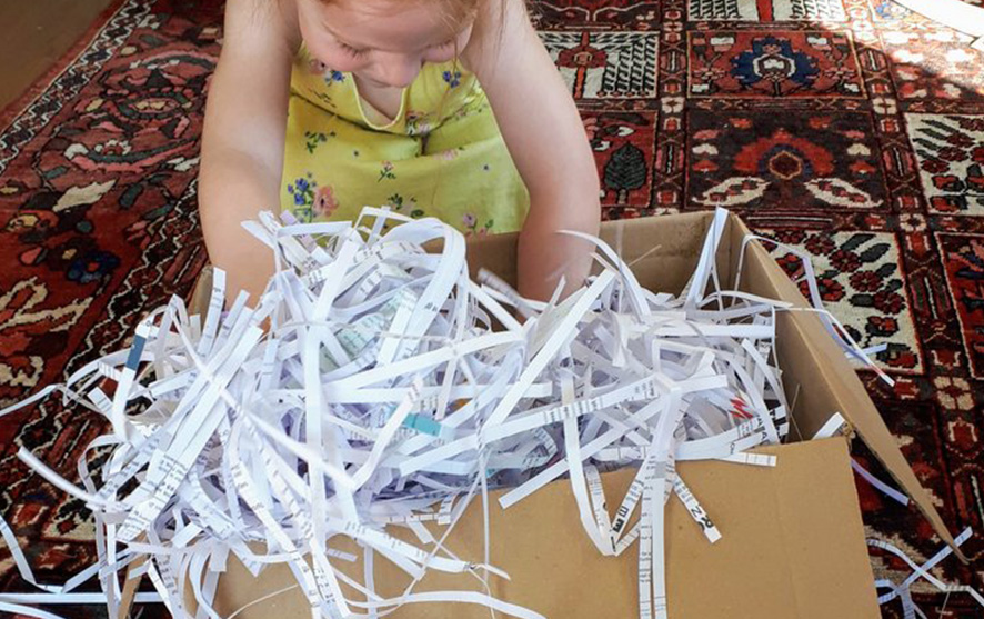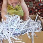 Place the random objects in the tub/box covered by shredded tissue paper. Ask your child to ‘fish’ for an object. Once they have chosen one, talk about it – point out all the details, the colour, the size. Is it hard? Is it soft? Using as much descriptive vocabulary as you can. Ask the child to explore as much as possible – can you smell it? Can you taste it?