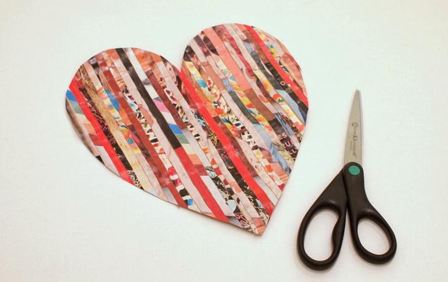 Show your child how to create thin strips from the magazines/flyers either tearing or cutting with scissors (they may like to try both) and how to stick these strips onto the cardboard. The idea is to continue sticking strips, closely together so that no cardboard shows through. Once the whole shape is covered, you may need to trim any strips that are overhanging.
