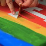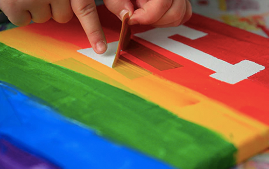 When they are finished and the paint is dry, you can peel off the tape to reveal their name amidst their own paint creations!