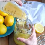 Pour the lemon juice into the cup and add water. Then add the tablespoon of honey – ask your child to mix it with a spoon until the honey dissolves (disappears). Talk about the colour, consistency, smell and taste of the honey.