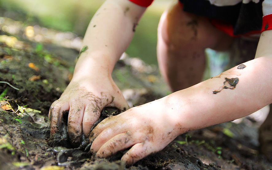 You will need a place to explore where you can make a bit of mess, perhaps an area in the garden or a container with your mud on a floor or table surface that is easily washable. Everyone will get messy so ensure you are wearing clothes that can take a little dirt and can be easily washed.