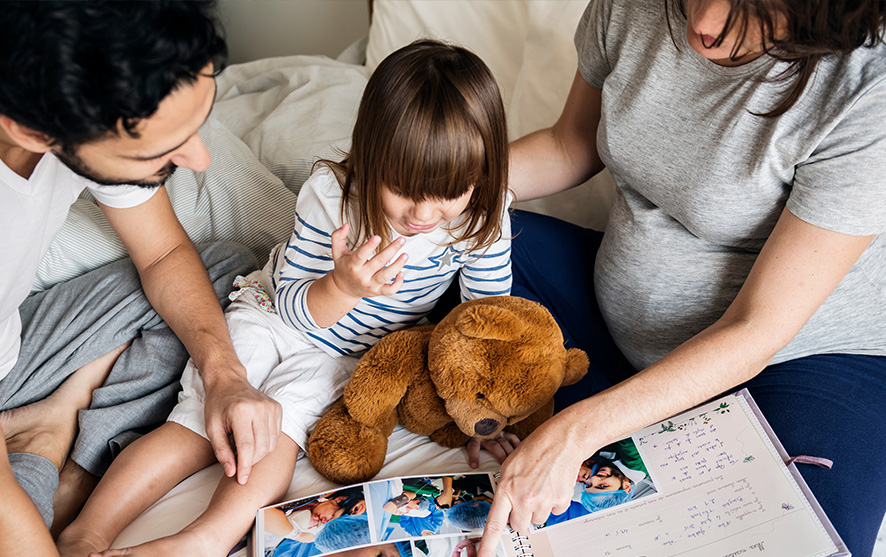 Look at the photos in the same way as your own family pictures, pointing to the different people in the picture and naming them e.g. ‘Mummy, baby, daddy’. You can talk to your child about their family and the families you see. E.g. you have two mummies, in this family, this little girl has a mummy and a daddy. Include different set ups – single parent, two mummies, two daddies, a mummy and a daddy, as well as different ethnicities, religious and cultural backgrounds.