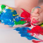 Place some newspaper on the floor, securing it with masking tape. Put paint on your child’s feet (or you could have a splodge of paint for them to walk into) Support your child as necessary, walking holding hands, or encouraging them to jump, march, stomp and enjoy the experience!
