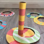 You will need to cut out the centre of your paper plates. Older children may like to help you do this – start by creating a hole in the plate and begin cutting, then let them continue to go around the rest of the circle. Your child may also enjoy decorating the outer edge of the paper plates and making them different colours.