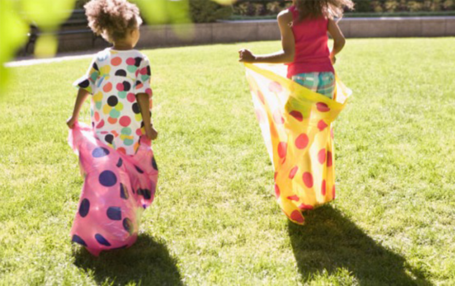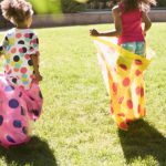 Grab a sack for your child (and yourself and any other family members who want to join in!) Create a start and finish line by using an object as a marker, a piece of string or chalk lines drawn on the ground.