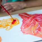 Here’s how to set it up: use a white crayon to draw pictures or write letters all over the paper. You can draw squiggles, patterns, shapes etc. It is all about the magic in the reveal. Then, hand over the paper to your child and let the letter/picture hunt begin.