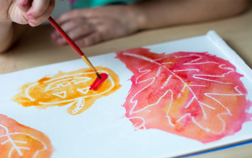 The crayon wax acts as a barrier against the watercolour paint (resisting it) making the letters magically appear on the paper.
