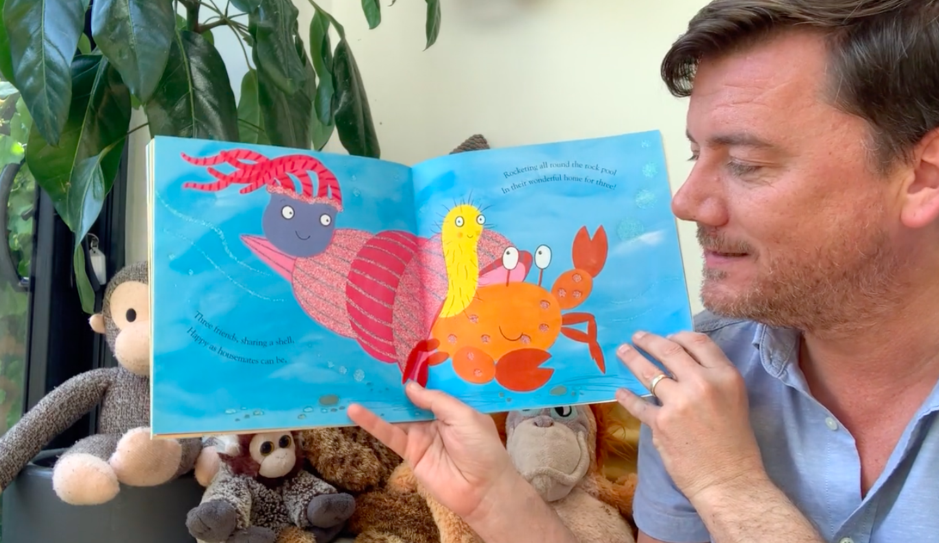 Pick a comfortable and cosy seat in your home to listen to the story of ‘Sharing a Shell’, a story about a tiny hermit crab who loves his new shell. He doesn’t want to share it – not with a blobby purple anemone and a tickly bristleworm. But life in the rock pool proves tougher than Crab thinks, and soon he finds he needs his new housemates in this rollicking story of sea, shells and friendship.