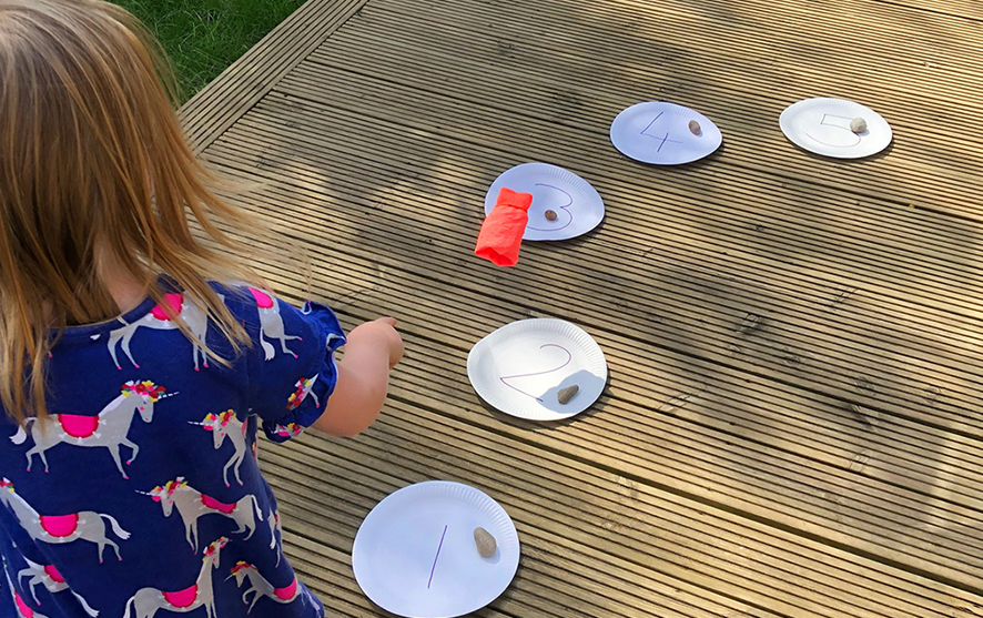 Throwing is a great way to develop gross motor skills as your child can practice their over and underarm throwing. Aiming for a target is also a great way to improve hand-eye coordination. Maths skills can be developed through reaching the targets.