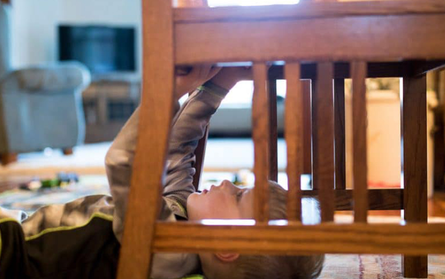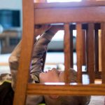 Then model laying under the chair, reaching up with your arms to make marks on the paper.